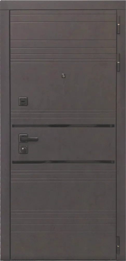 Внешняя отделка: МДФ панель 10мм, цвет бетон графит, + вставки декоративные черные (пластик). + Декоративные МДФ наличники.